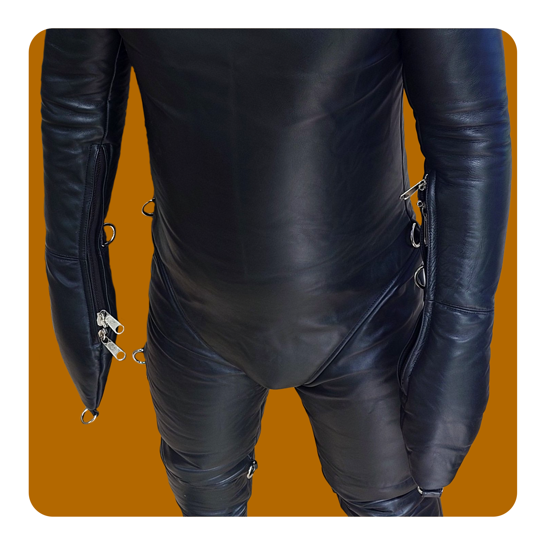 Leather lined, this is one hot suit and can provide you with hours of heaven or hell, depending on how you are handled ! And with that padded leather all over, you will be getting a leather hug whilst wearing it.